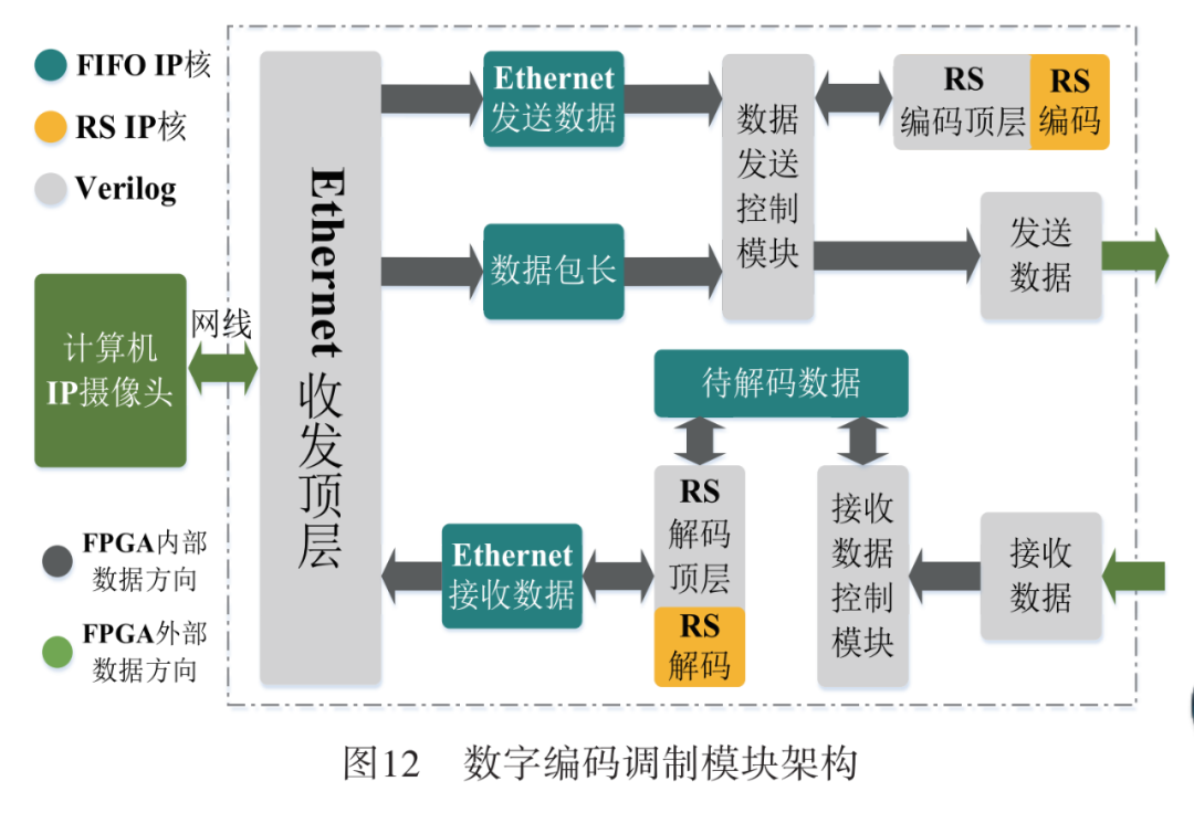 数字编码解调模块是本文UOWC系统中的信号源与信宿,作为系统与上位机如IP摄像头、电脑或路由器等设备的数字连接。