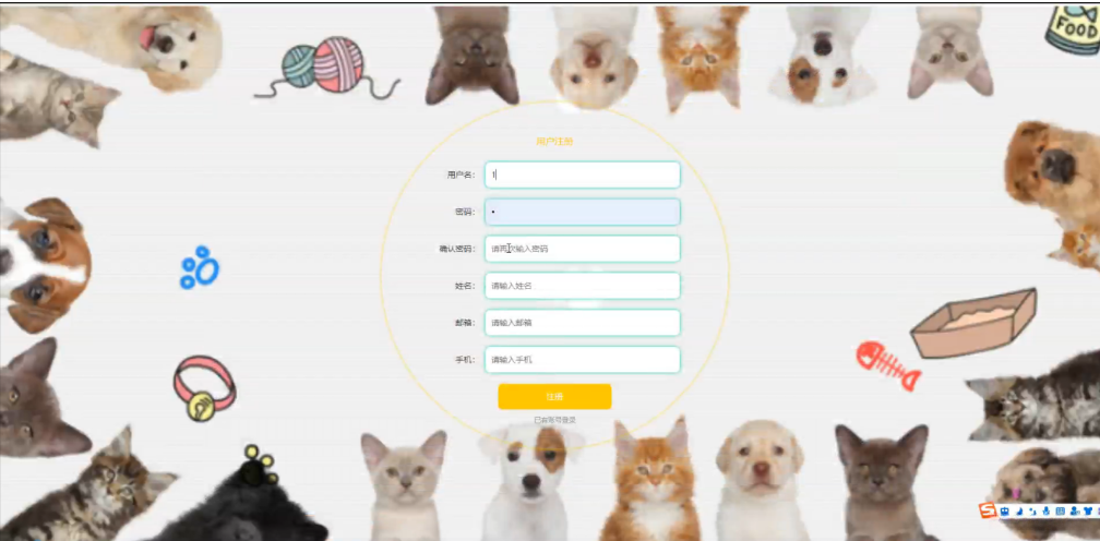 用户注册:在用户注册页面的输入栏中输入用户名、密码、确认密码、姓名、邮箱、手机等信息进行注册操作,用户注册页面如图5-2所示: