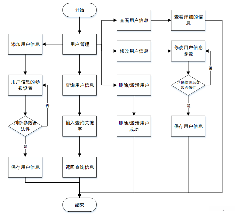 由于不同的系统实际使用用户角色的不同,他们的业务分析也会变得有所不一样,为了论述方便接下来都将以管理员用户功能权限下的系统业务流程来分析,如下图所展示: