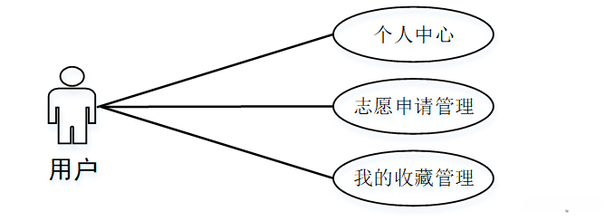 用户登入使用本系统涉到的功能主要有个人中心、志愿申请管理、我的收藏管理等功能。用户用例如图3-2所示。