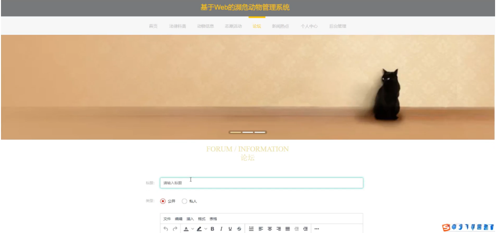 论坛:在论坛页面输入标题、类型、内容进行发布帖子或重置操作;论坛页面如图5-6所示: