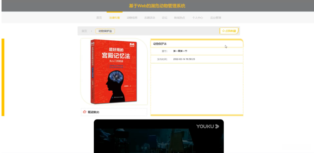 法律科普:在法律科普页面的输入栏中输入标题和章节进行搜索,可以查看到法律科普详细信息,并进行收藏操作;法律科普页面如图5-3所示: