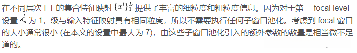 假设输入特征映射 ,其中 M×N 为空间维数,d 为特征维数。为所有的 L 层执行子窗口池化。对于 focal 级别 l,首先将输入特征映射 x 分割成大小为