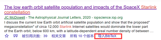 接着,在谷歌学术平台中进行如下操作:首先检索待引用文献,在结果页面选择导出格式为BibTeX即可获得所需的文献引用信息