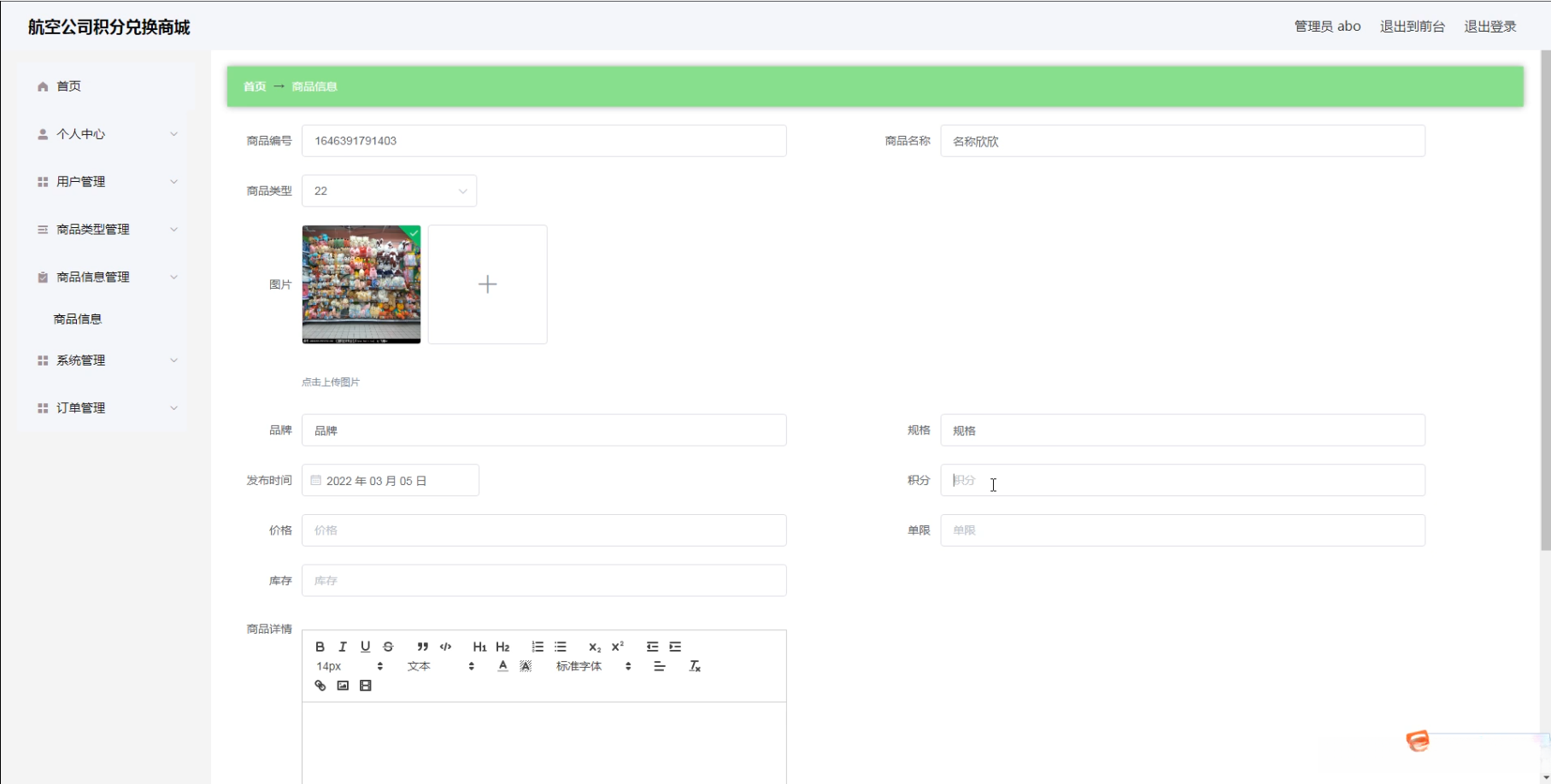 本项目致力于开发一个航空公司积分兑换商城系统平台。该平台旨在通过优化积分管理与兑换流程的设计与实施,在满足多样化的兑剧行为的同时显著提升了用户体验体验,并进一步增强了客户忠诚度。具体的实现目标包括:1) 扩大商品类别范围,并满足多样化的兑剧行为需求;2) 优化兑剧行为操作流程以提高效率水平;3) 通过改进服务模式来提升客户满意度以及忠诚度;4) 整合航空特色服务产品为用户提供更多选择。
