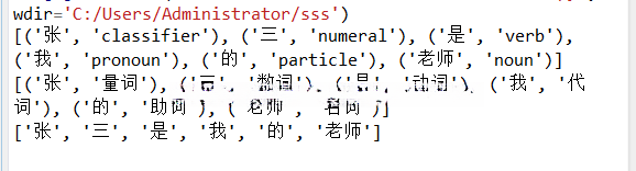 print(pynlpir.segment(str, pos_english=False)) # 把词性标注语言变更为汉语
