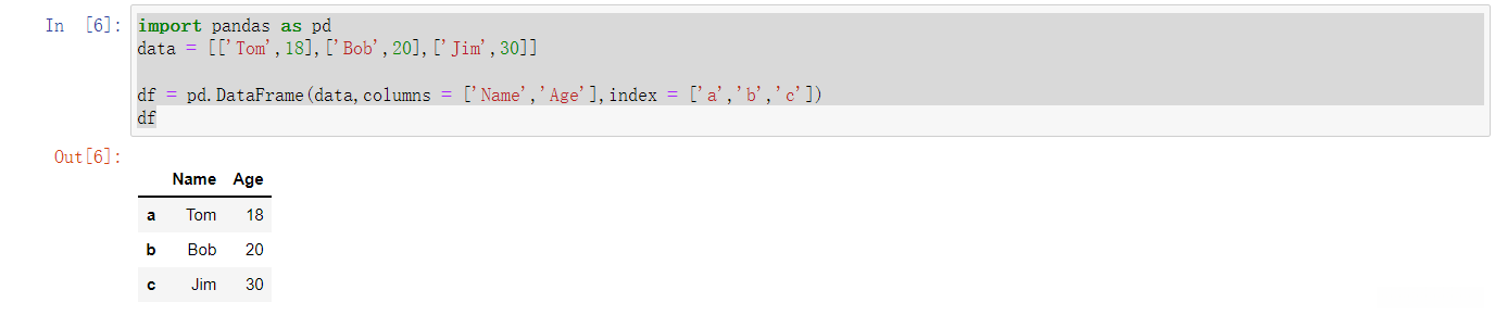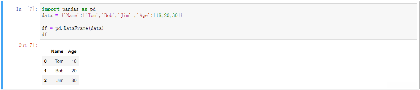 data = {'Name':['Tom','Bob','Jim'],'Age':[18,20,30]}