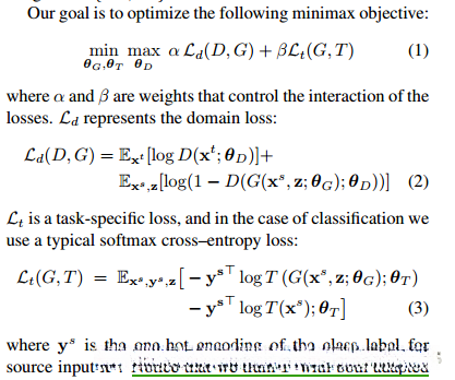 G是生成网络,xs是源域,xf目标域,z为噪声,其他为网络要学习的参数