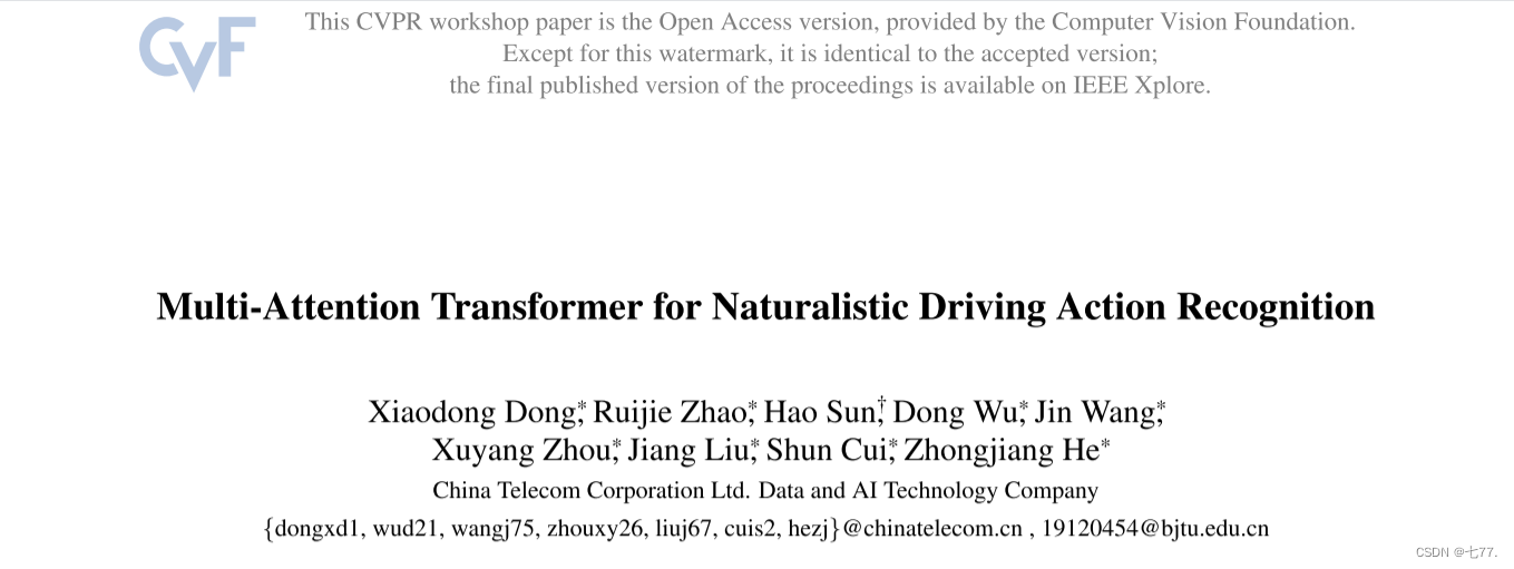标题:用于自然驾驶行为识别的多注意力Transformer