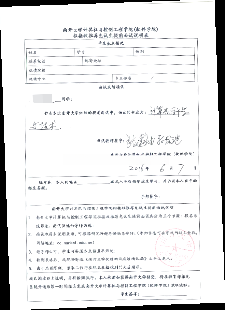 2016推免面试经历纪实——南开大学计算机与控制工程学院