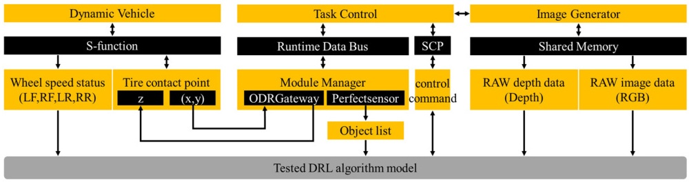 多模块协同系统主要由动态车辆模型组成,并结合数据融合技术进行实时处理。这些核心功能主要体现在以下几方面:首先运用先进的传感器数据融合技术(包括陀螺仪和轮速传感器等),其次采用基于执行器的智能控制策略(例如制动和转向),通过共享内存或总线通信实现闭环控制系统的设计与实现。