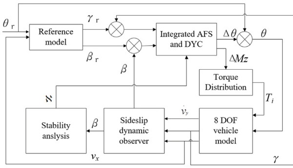 在本研究中,我们对主动前轮转向系统(AFS)进行了深入研究,并将其整合到动态横摆控制(DYC)框架中;通过目标角度与实时状态反馈的综合分析,我们确定了力矩分配的具体策略.