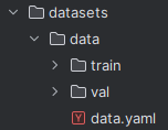 在项目根目录下创建datasets文件夹以存储图片数据格式信息,并将收集到的图像按照训练集与验证集分类存入该文件夹内。