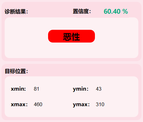 结果(Result):“恶性肿瘤”,表示系统正在高亮显示检测到的“malignant”。