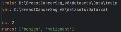 该文件说明了在模型训练与验证过程中所使用的数据集路径,并指明了模型需要识别的目标类别。