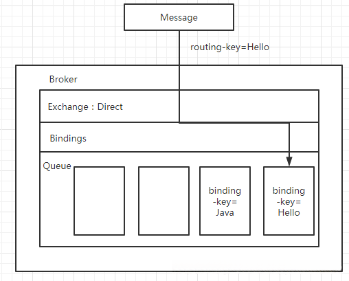 - Direct::当信息中的Routing-key精确匹配Binding中的Binding-key时, 交换机会直接将该信息发送至对应的通道上,