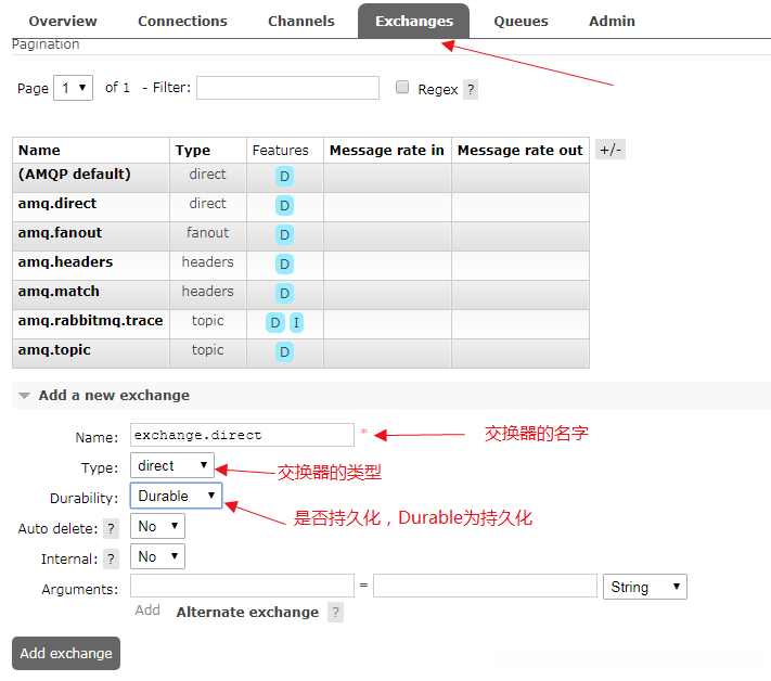 在开发过程中,在rabbitmq的管理页面中进行设置,并且在程序中使用AmqpAdmin则提供了简便的方法来进行配置。
