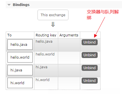 例如,只有当消息的路由键为hello.java的时候,才能进入hello.java队列