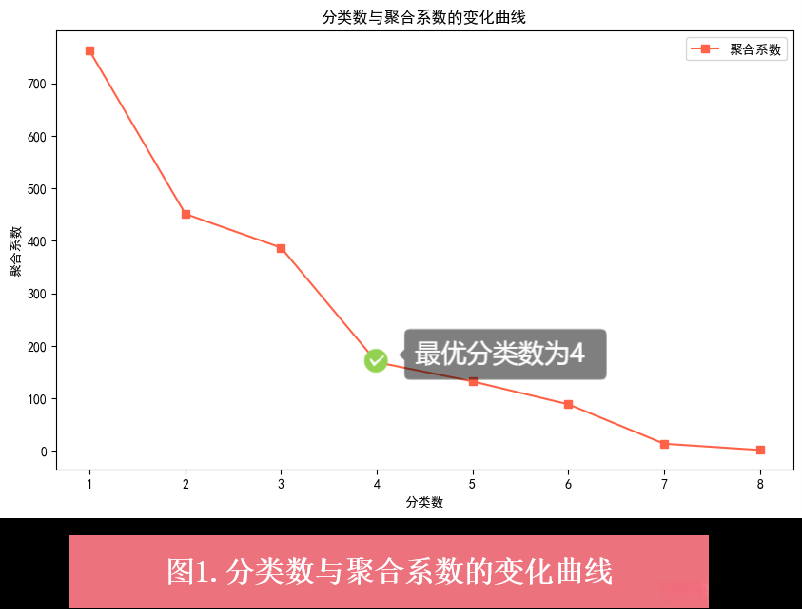 该表格展示了SPSS程序生成的聚类系数数据,并在下文中通过Python软件绘制了对应的图形显示在下文