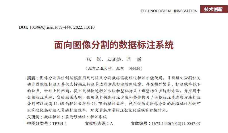 文章来源:张悦,王晓懿,李娟. 面向图像分割的数据标注系统 [J]. 铁路通信信号工程技术(RSCE), 2022,19(11)