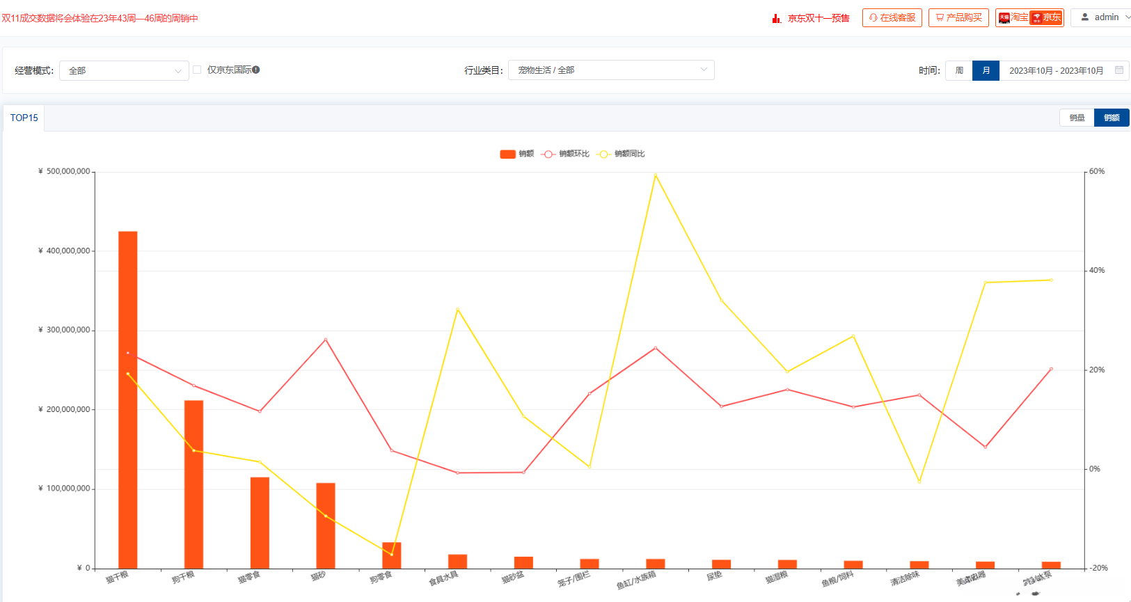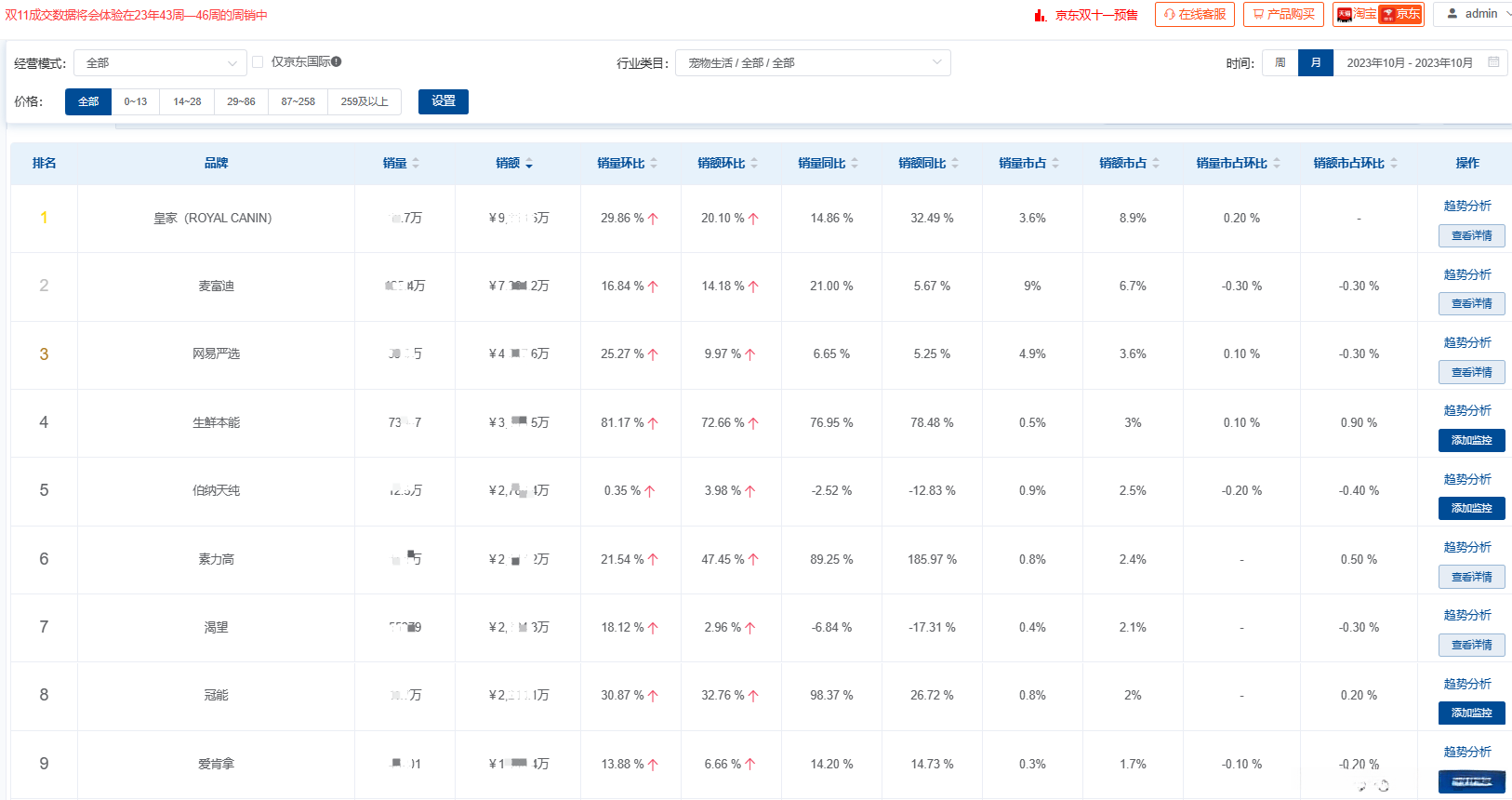 京东看数据-京东运营数据分析-10月宠物市场销售数据分析(宠物店铺数据查询)