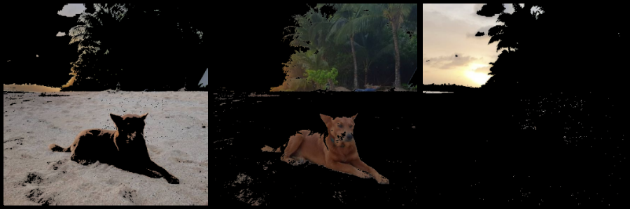 太好了,我们可以看到狗是一个整体。现在让我们看看如果将每个聚类作为单独的蒙版应用于图像会发生什么。