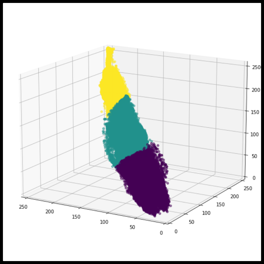 我们可以看到,该算法生成了三个不同的簇,即沙子,生物和天空。当然,算法本身对这些簇并不十分在意,只是它们共享相似的RGB值。要由人类来解释这些簇。