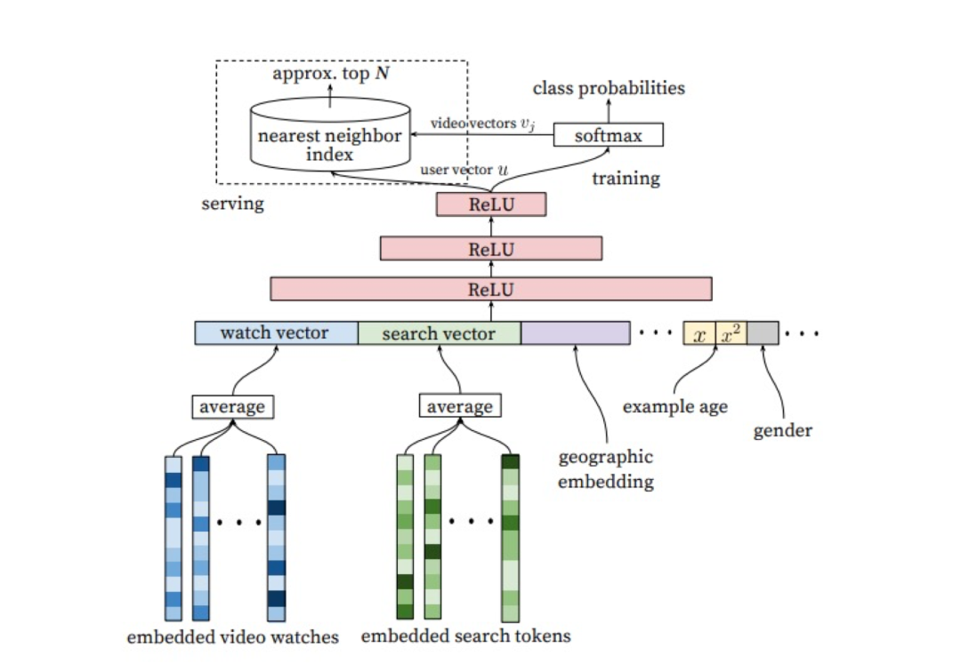 推荐领域覆盖的应用场景较多,工业界的推荐系统架构介绍首推谷歌2016年的论文:Deep Neural Networks for YouTube Recommendations