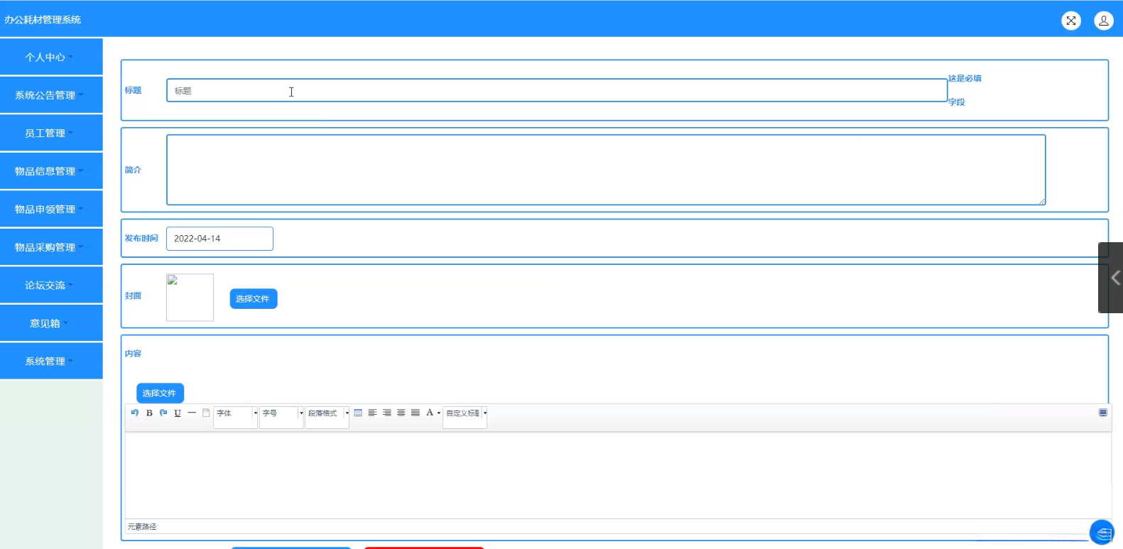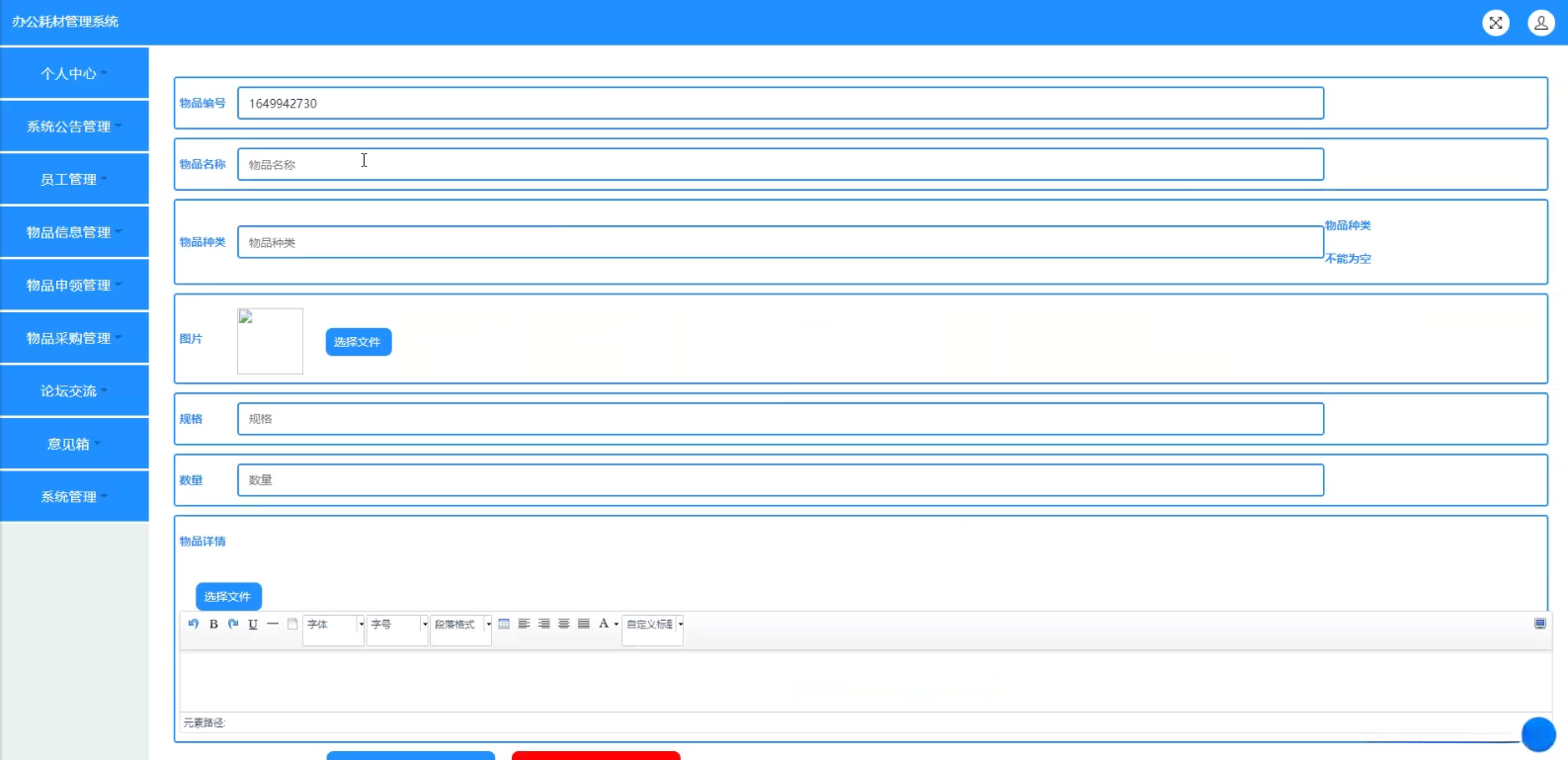 办公耗材管理系统作为企业运营中不可或缺的重要组成部分,在现代企业管理中扮演着关键角色。对于实时监控和管理打印纸、墨盒、文具等办公物资的使用情况而言, 它具有不可替代的作用. 在企业规模不断扩大以及对办公效率要求日益提升的情况下, 传统的手工记录与经验证管方式已显现出难以适应现代高效办公的需求. 因此, 开发一套计算机化的办公耗材管理系统已然成为各类组织迫在眉睫的任务. 这样的系统不仅能够实现对耗材库存进行自动化监控与预测其使用趋势的能力, 并且能够智能地生成相应的采购订单. 此外, 它还具备优化资源利用率的作用, 能够有效降低运营成本, 同时也能显著提升企业的办公自动化水平. 此外, 这一设计也是计算机专业学生展示自身软件开发能力和系统设计能力的理想实践平台.