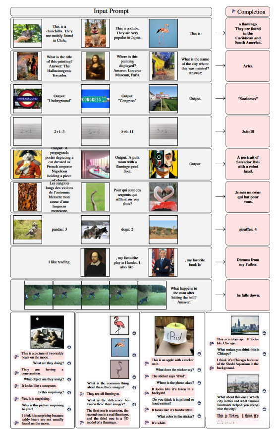 Figure 1 : Selected examples of inputs and outputs acquired from Flamingo-80B. Flamingo is capable