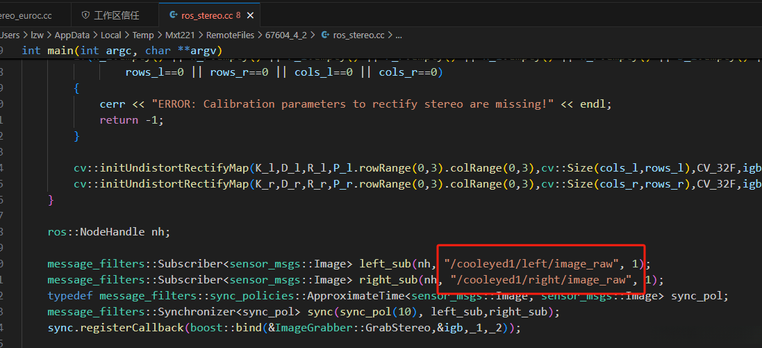 1、修改双目部分文件,主要是图象订阅话题名称