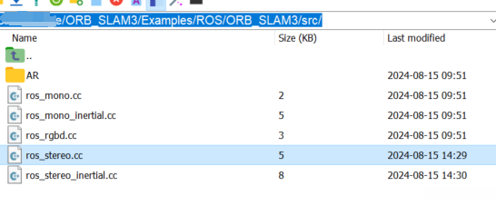 因为我是用的双目灰度相机,需要修改ORB_SLAM3/Examples/ROS/ORB_SLAM3/src下的