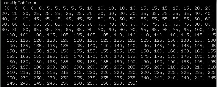 优先采用内置函数以提升效率。LUT函数通过查找表的形式处理原始图像I中的每个像素值,并将其映射至结果图像J中。Lookup Table将每个阈值范围划分为5个区间以实现降噪效果。