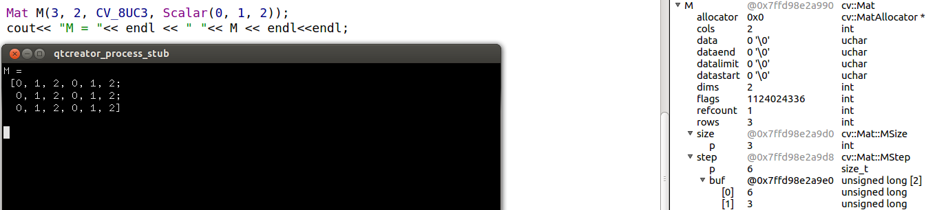 cout << "Vector of floats via Mat = " << Mat(v) << endl << endl;