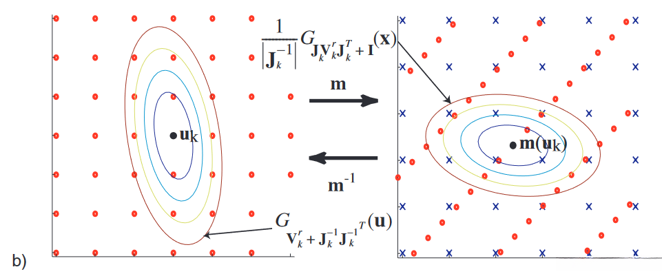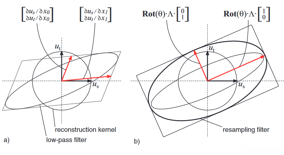 b) The resampling filter as a mapping from a unit circle to an ellipse.