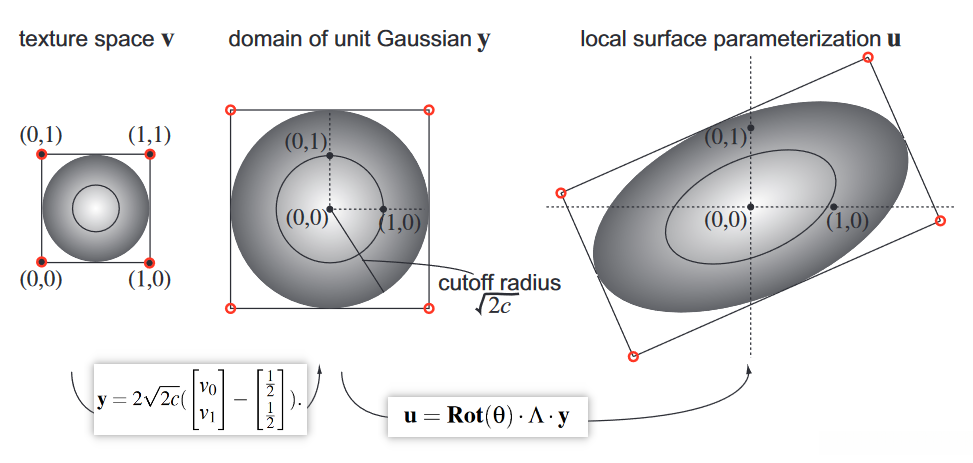 Constructing a texture-mapped polygon that represents the object space EWA resampling filter.