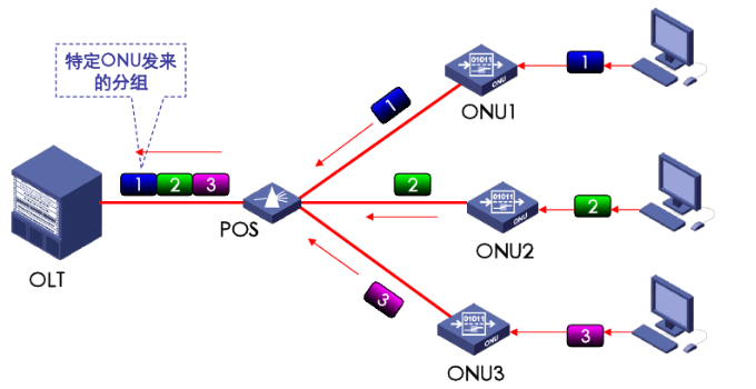 所有的ONU都能接受到相同的数据,但是通过LLID来区分不同的ONU数据,ONU只接收属于自己的数据,丢弃其他用户的数据。
