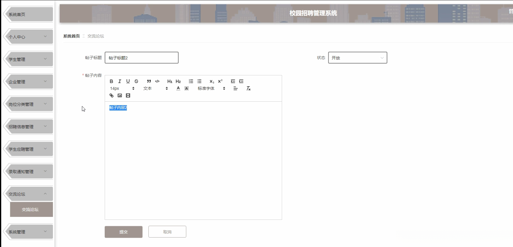 【开题报告】基于Springboot+vue校园招聘管理系统(程序+源码+论文) 计算机毕业设计