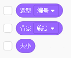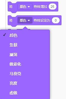 这组积木块用于角色或背景 的不同效果,并通过下拉式菜单选择不同的效果。