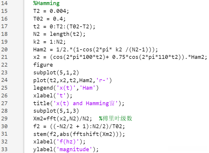 (1)确定DFT计算的各参数(抽样间隔,截短长度,频谱分辨率等);