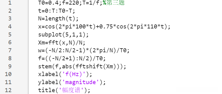 3.假设一实际测得的一段信号的长度为0.4s,其表达式为