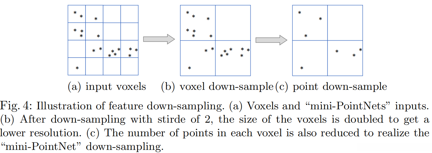 为了实现点级下采样,通过重新采样以获取新的“ mini-PointNet”来减少每个体素中的点数。