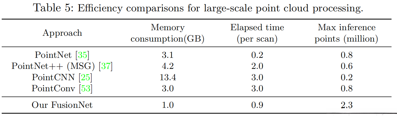 - PointNets 和逐点卷积网络不同,后者需要较高的计算复杂度才能进行邻域搜索。由于FusionNet利用regular-