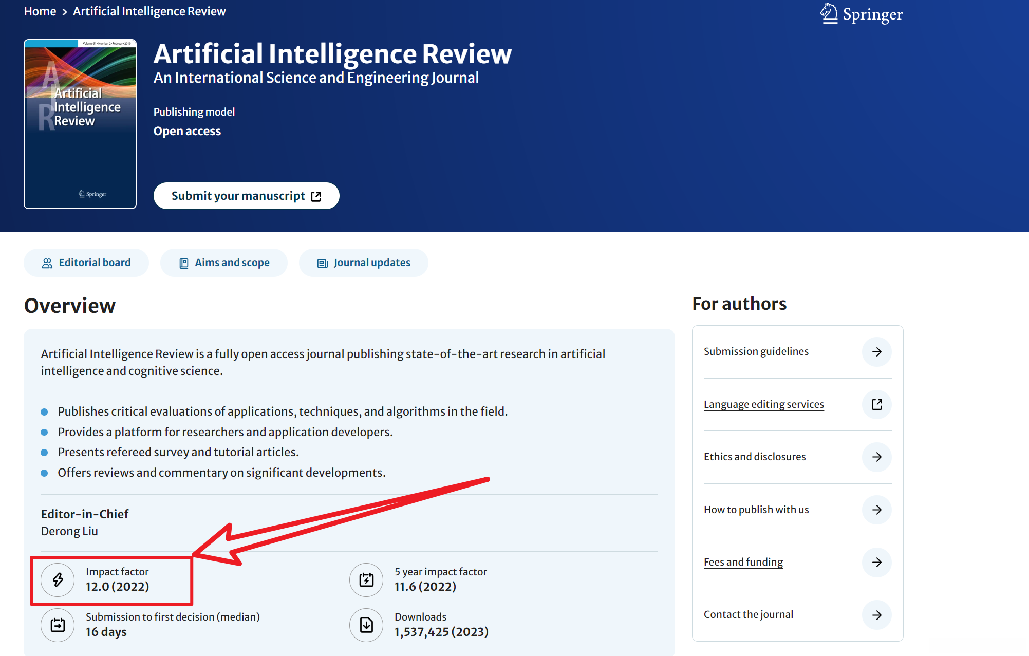 《人工智能评论》是一本完全开放获取的期刊,发表人工智能和认知科学领域的最新研究。