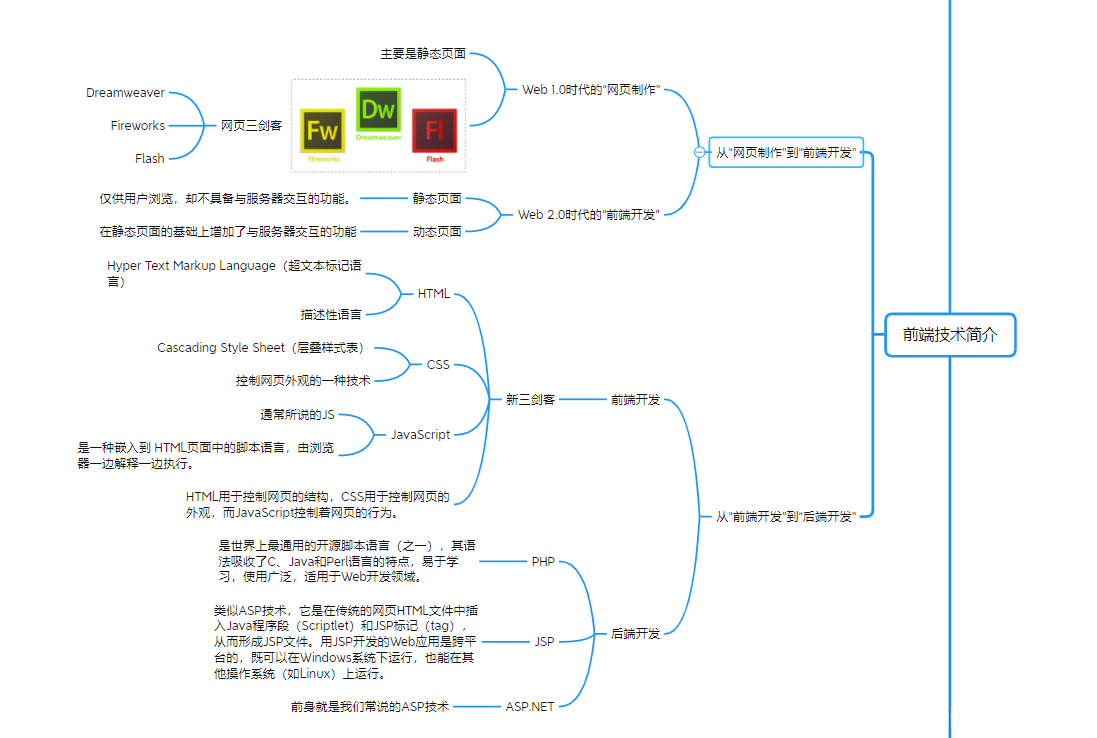 看了很多前端发展史,大多数前端大牛们都将前端的发展分为三个阶段,“网页制作”、“前端开发”、“后端开发”。其实最长看到的还是“三剑客”,大多数人还浅显的认为,只要掌握了三剑客就掌握了前端,可笑的是他们可能还分不清,“网页三剑客”和“前端三剑客”。