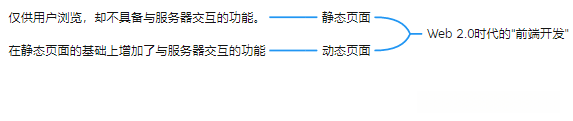 “前端开发”是从“网页制作”演变而来的。互联网于十多年前进入了Web 2.0时代,在Web 2.0时代,网页分为两种:“静态页面”,“动态页面”。仅使用“网页三剑客”来做开发,是不能满足大量数据交互开发需求的。现在的“页面开发”,更接近传统的网站后台开发。因此,不再叫“网页制作”,而是叫“前端开发”。