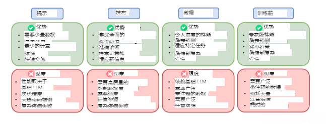- 此外,在实际应用中,LLMs的表现稳定性存在欠缺,在移动设备环境下难以保证可靠的预测能力,并且在早期诊断等特定场景下也面临着诸多限制因素