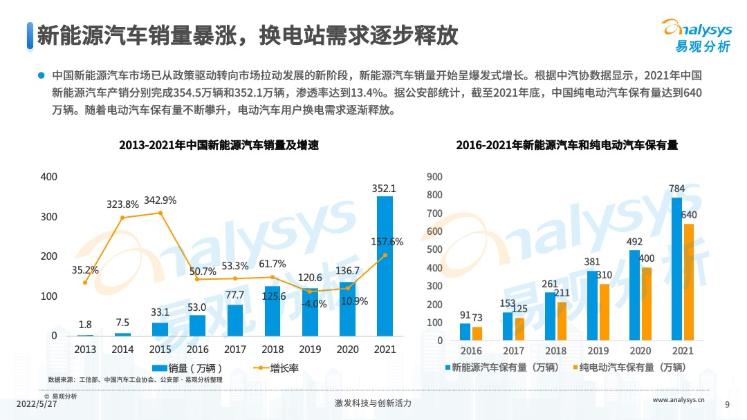 《数字经济全景白皮书》深入探讨了新能源汽车行业的现状与发展。该行业展现出快速发展的态势,并带动了相关配套设施的发展。尽管当前换电技术尚未获得广泛应用, 但近年来我国换电站的建设和运营规模呈现出显著增长的趋势。随着更换电池技术逐渐成熟, 相关企业纷纷加速布局更换电池技术相关业务, 并推动了政策法规体系的完善