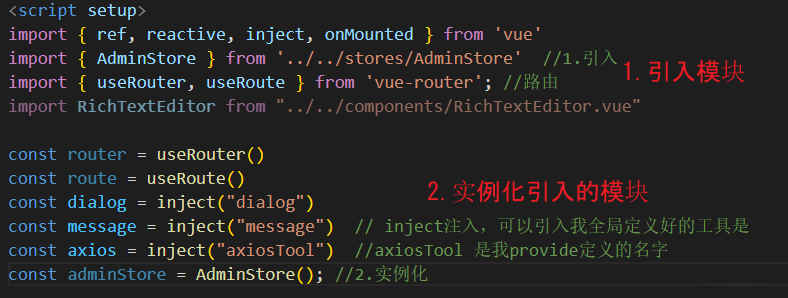 import { ref, reactive, inject, onMounted } from 'vue'
