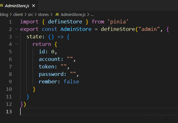 AdminStore全局变量,存放token。